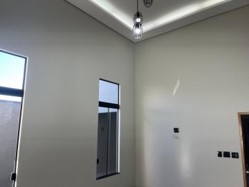 - Sala ampla com pé direito alto e projeto de iluminação moderno