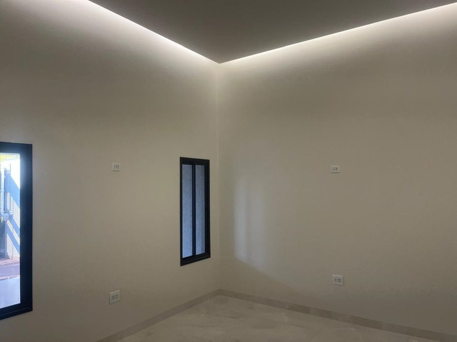Sala com pé direito alto e iluminação indireta